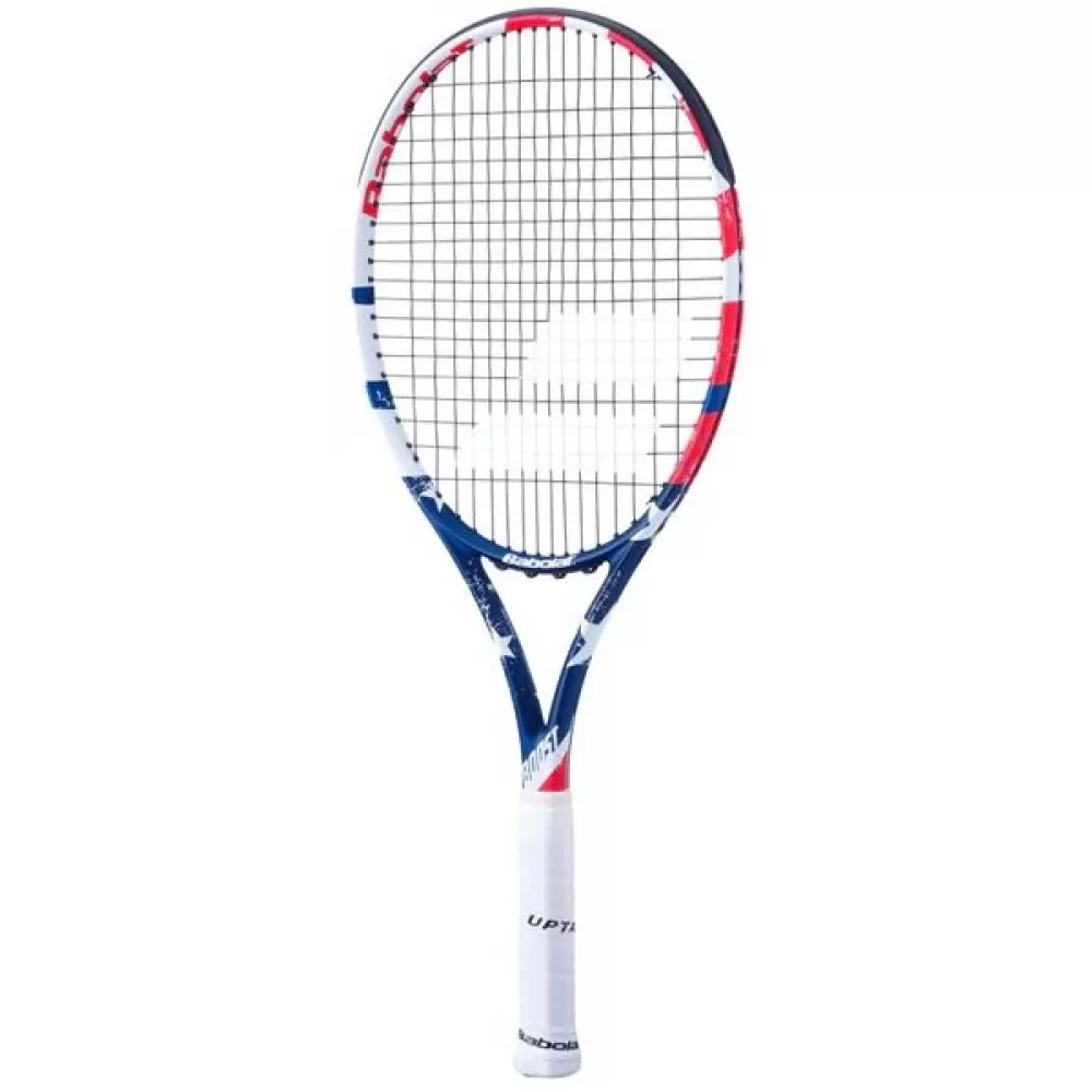 The Babolat Boost USA Tennis Racquet is pre-strung with Babolat’s Spiraltek 16 at Babolat’s recommended tension of 53 lbs.
