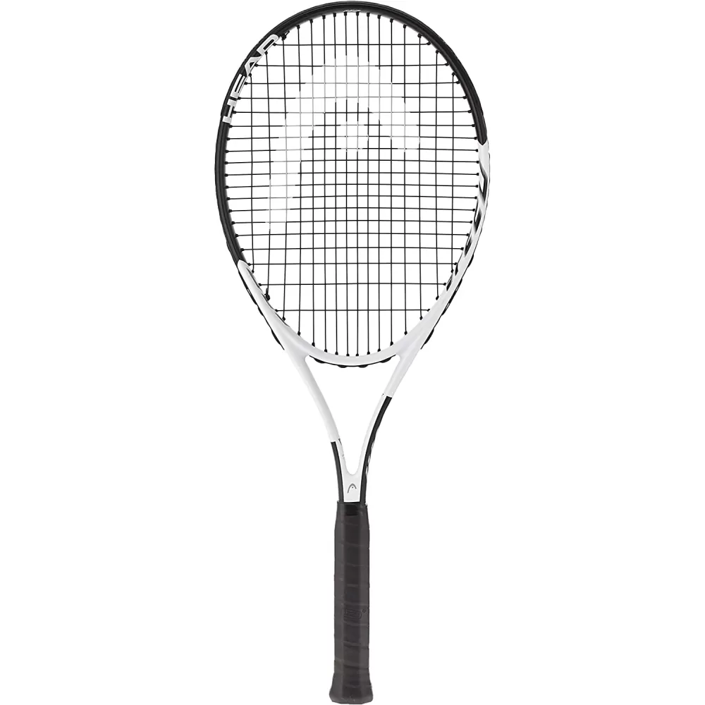 The Head Geo Speed Prestrung Tennis Racquet packs more power on the court. Engineered with Geo Power technology, this prestrung tennis racquet features durable composite construction, a synthetic grip and a large sweet spot for solid ball contact. This prestrung frame offers ideal amounts of power and touch to beginner level players. Take your game to the next level with this beginner level racquet that features an oversized head in a lightweight, controllable package – allowing for ideal play out on the court.