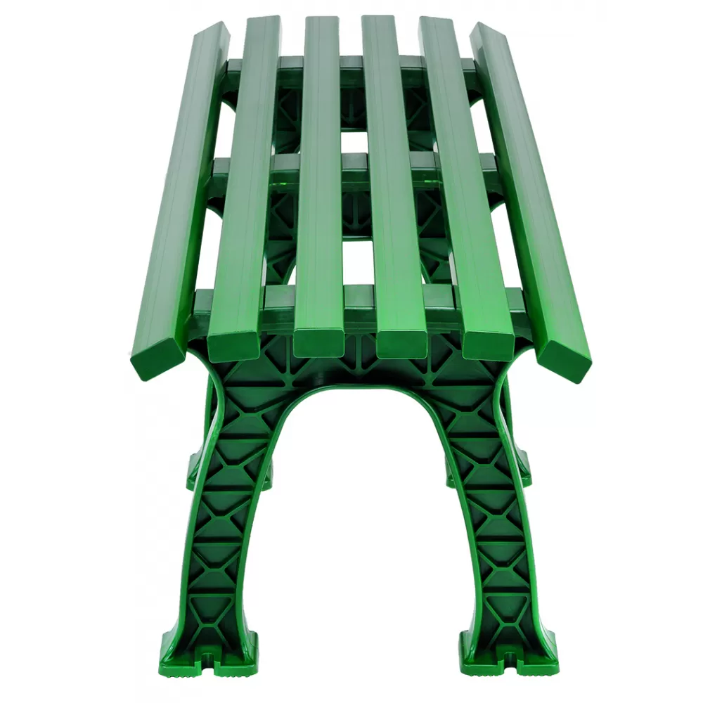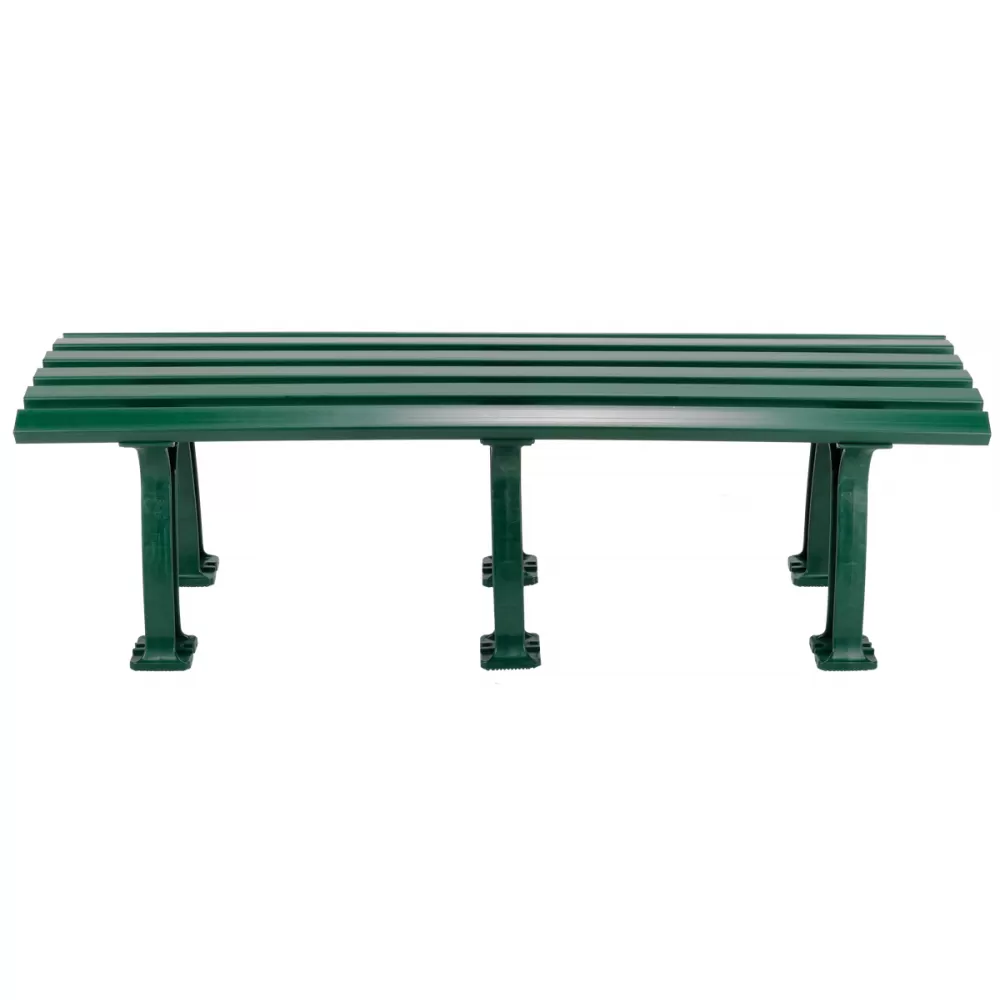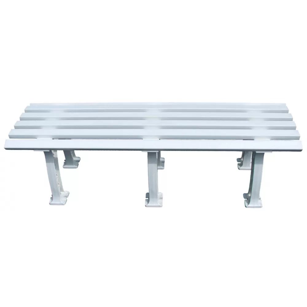 The Tourna 5-Foot Mid-Court Tennis Bench provides mid court seating for much needed rest. This bench is made of heavy duty, high density polyethylene and PVC plus treated for the effect of moisture using UV and inhibitors. This bench will weather all of the elements for many seasons to come without needing maintenance. Seat is slatted to allow air circulation and the seat edge curves downward for added comfort.